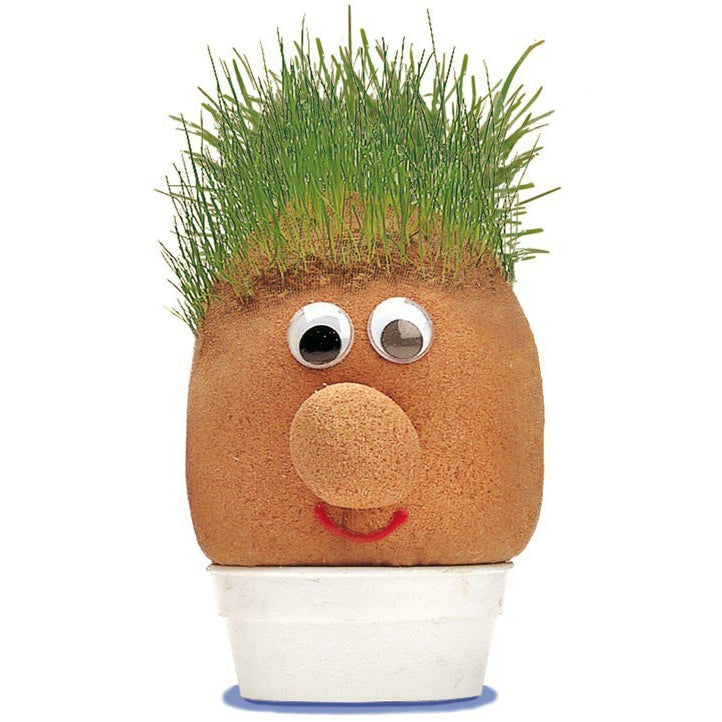 Mr.Grasshead is about the same size as an adults clenched fist. Filled with sawdust, and with grass seeds already in the top of his head, all you have to do is water his head, and plonk him in the water saucer provided. When his hair starts to grow you can trim it to any hairstyle you like. His hair will keep growing for as long as you keep watering him!